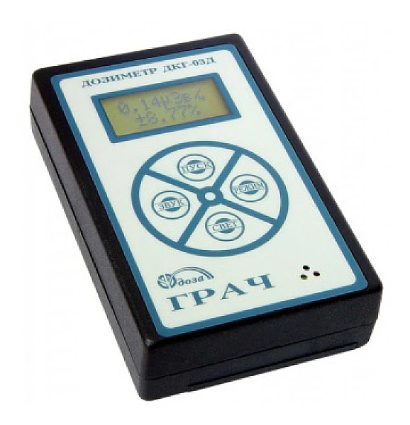 Дозиметр ДКГ-03Д «Грач» − высокочувствительный недорогой дозиметр, удобный для проведения радиационных обследований. Результат измерения и его погрешность индицируются непрерывно с момента начала измерений и постоянно уточняются. Процесс измерения можно прервать при достижении необходимой погрешности. Благодаря звуковым сигналам с частотой, пропорциональной мощности дозы, прибор также удобен для оценки радиационной обстановки.