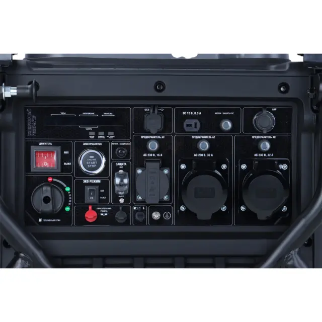 Помимо стандартных розеток, инверторный генератор оснащен: