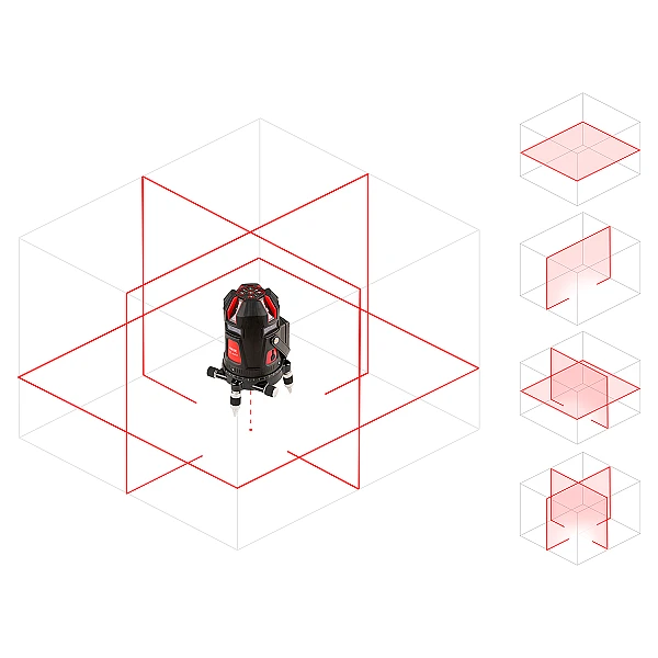 Лазерный уровень RGK UL-44W оснащается специальным лазером увеличенной мощности и проецирует четыре вертикальных и горизонтальную плоскость с разверткой 360°. Линии, которые строит этот лазерный нивелир, отлично видны при любом освещении на дистанции до 20 метров, а с использованием приемника лазерного излучения – до 50 метров. Корпус UL-44W имеет поворотную конструкцию и оснащен двумя винтами наводки и горизонтальным лимбом, что в сочетании с широкой разверткой позволяет избежать перестановок прибора, а, значит, и потери точности.